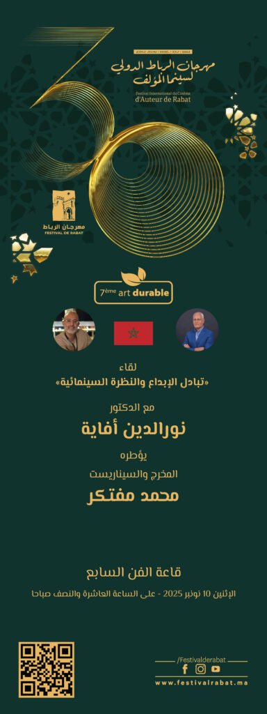 من بين أقوى لحظات برنامج الدورة الثلاثين لمهرجان الرباط الدولي لسينما المؤلف بالرباط (8-14 نونبر 2025) اللقاء المفتوح صباح الإثنين 10 نونبر الجاري ابتداء من العاشرة والنصف بقاعة الفن السابع مع المفكر والسينفيلي والباحث الأكاديمي الدكتور محمد نور الدين أفاية (69 سنة)، بمناسبة تكريمه في حفل افتتاح المهرجان بمسرح محمد الخامس، الذي سيؤطره المخرج والسيناريست محمد مفتكر، وهو لقاء لتبادل الإبداع والنظرة السينمائية.